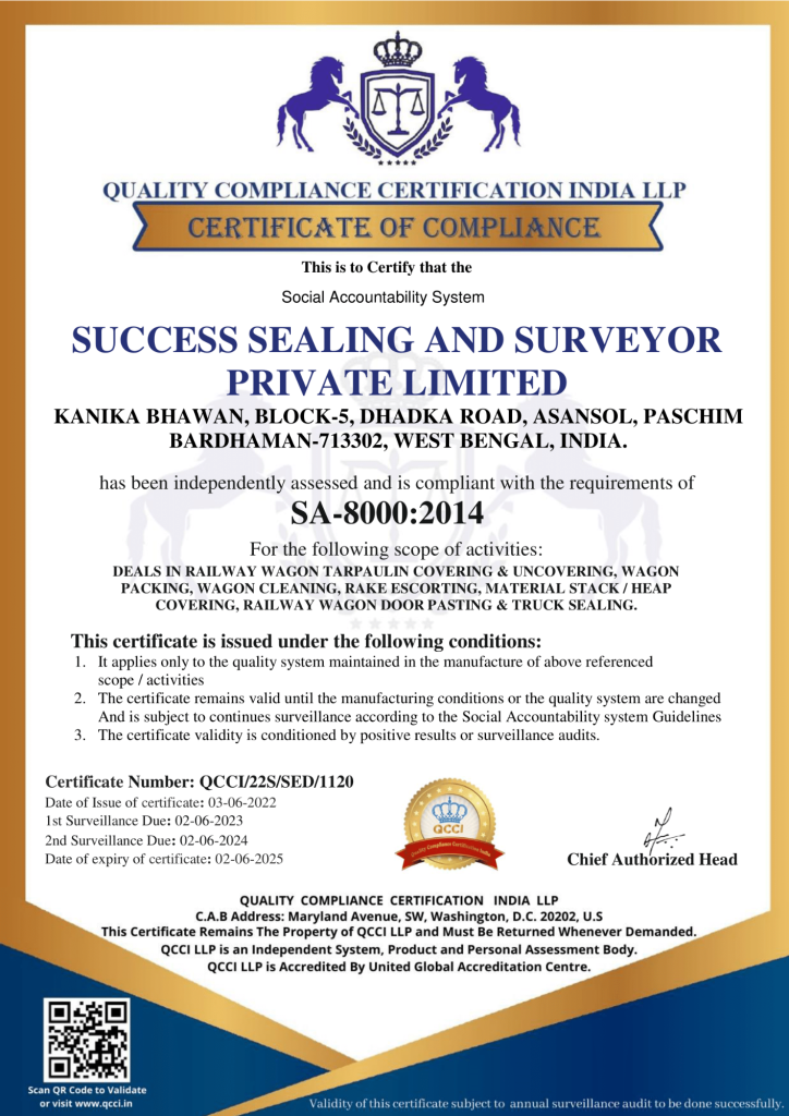Success Sealing & Surveyor Pvt. Ltd. is one of the foremost professionally and managed organization operating all Rail logistic services in especially in mentioned commodities rake for the last 8 years most effectively.