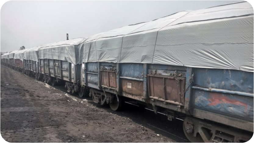 We do covering of rake on the top of the wagons with Good Quality HDPE/PP Tarpaulin (laminated) & 100% water proof.